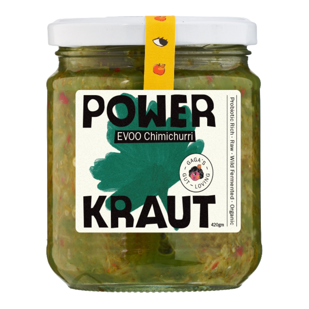 Chimichurri sauerkraut with extra virgin olive oil offers a delightful fusion of zesty, herbal flavours that elevate the traditional tang of lacto-fermented sauerkraut. Characterised by its fresh parsley, oregano, and garlic, mingling seamlessly with a hint of red pepper that provides a gentle heat.