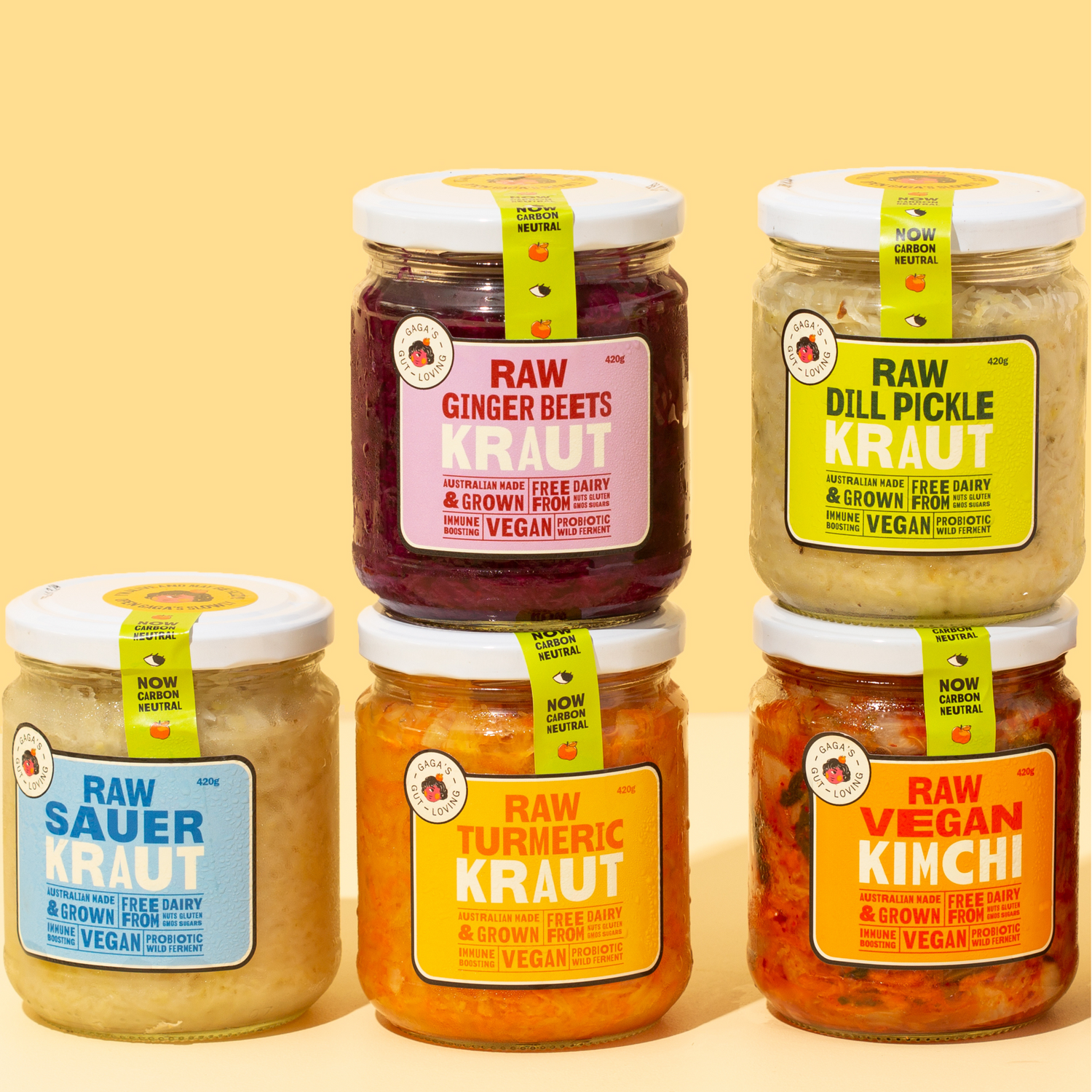Nutrient-packed and full of flavour, Gaga's Raw Living Kraut is the tastiest way to get an extra dose of probiotic nutrients! Flavours include Dill Pickle, Ginger Beets, Turmeric Carrots & a straight-up Sauerkraut for the traditionalists.